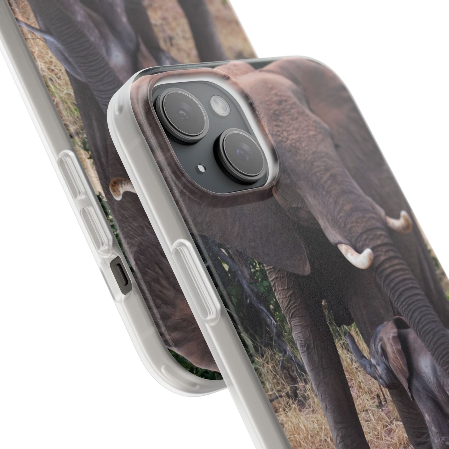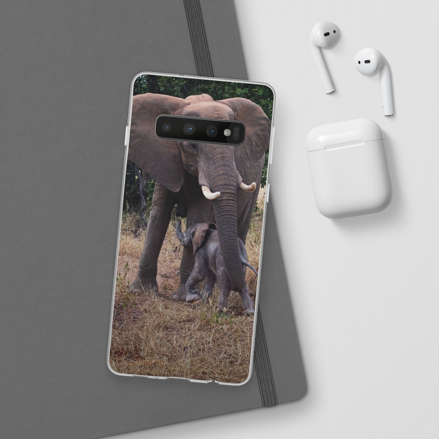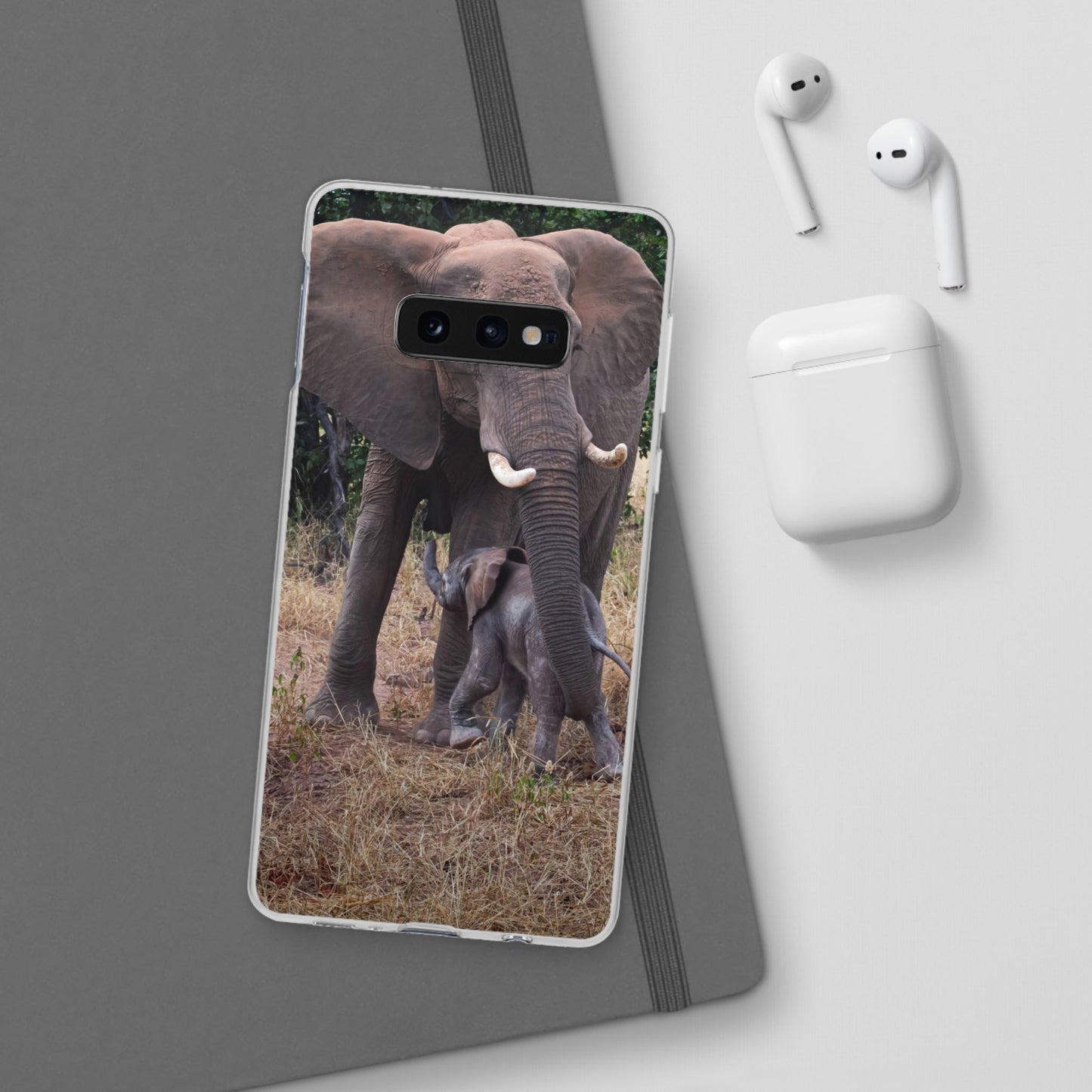 This elephant flexi case showcases a stunning photo taken in the Tuli Block of Botswana, capturing a powerful moment of a mother elephant lovingly protecting her calf. The vivid image reflects the deep bond between these majestic creatures, making it a perfect choice for nature lovers who appreciate the beauty of wildlife.