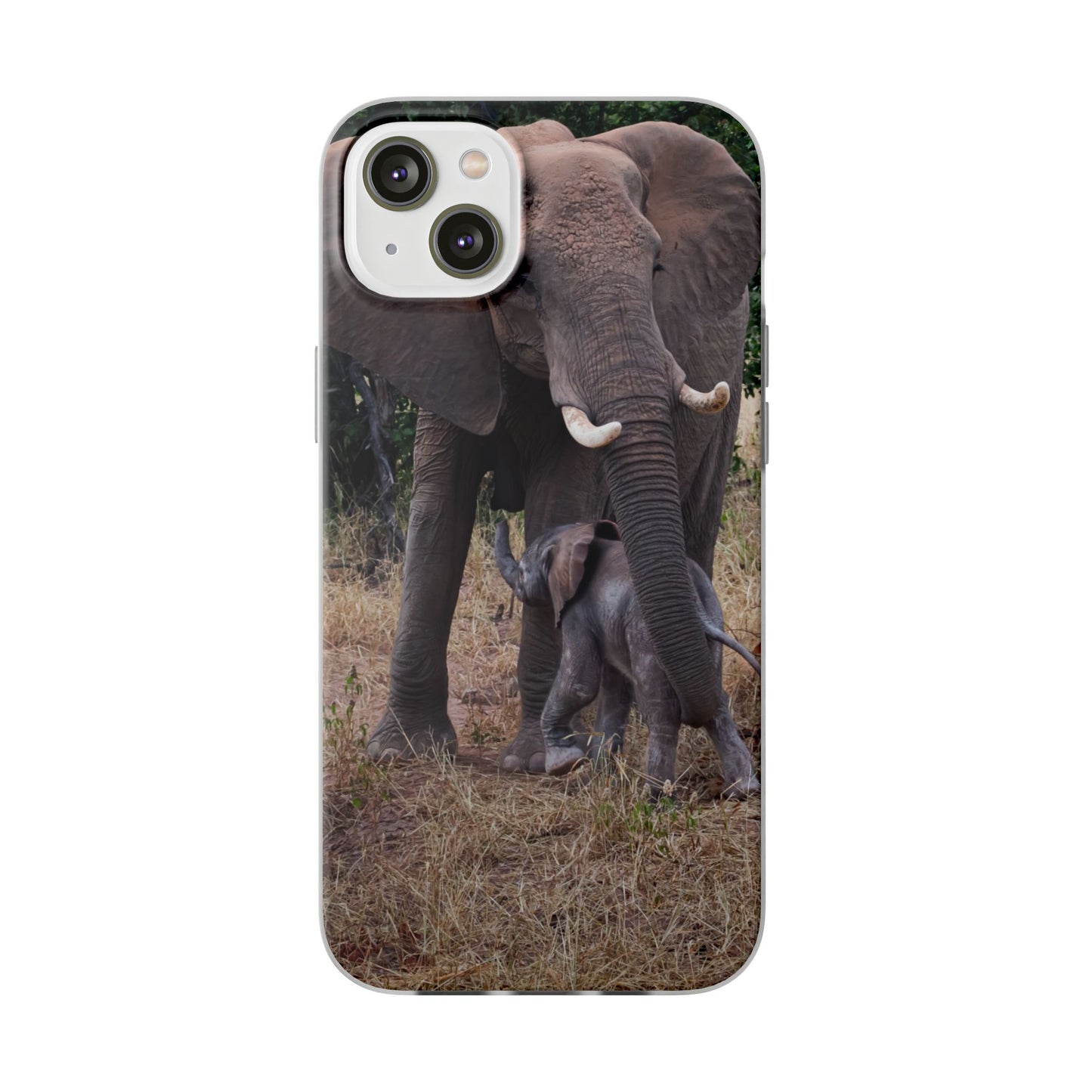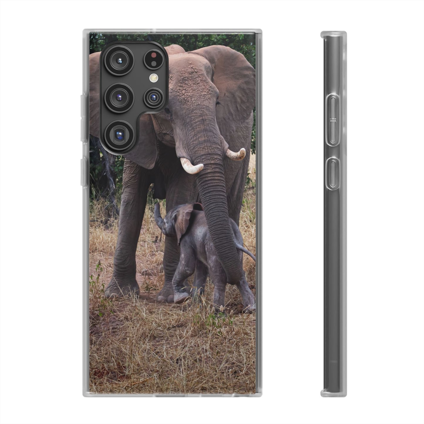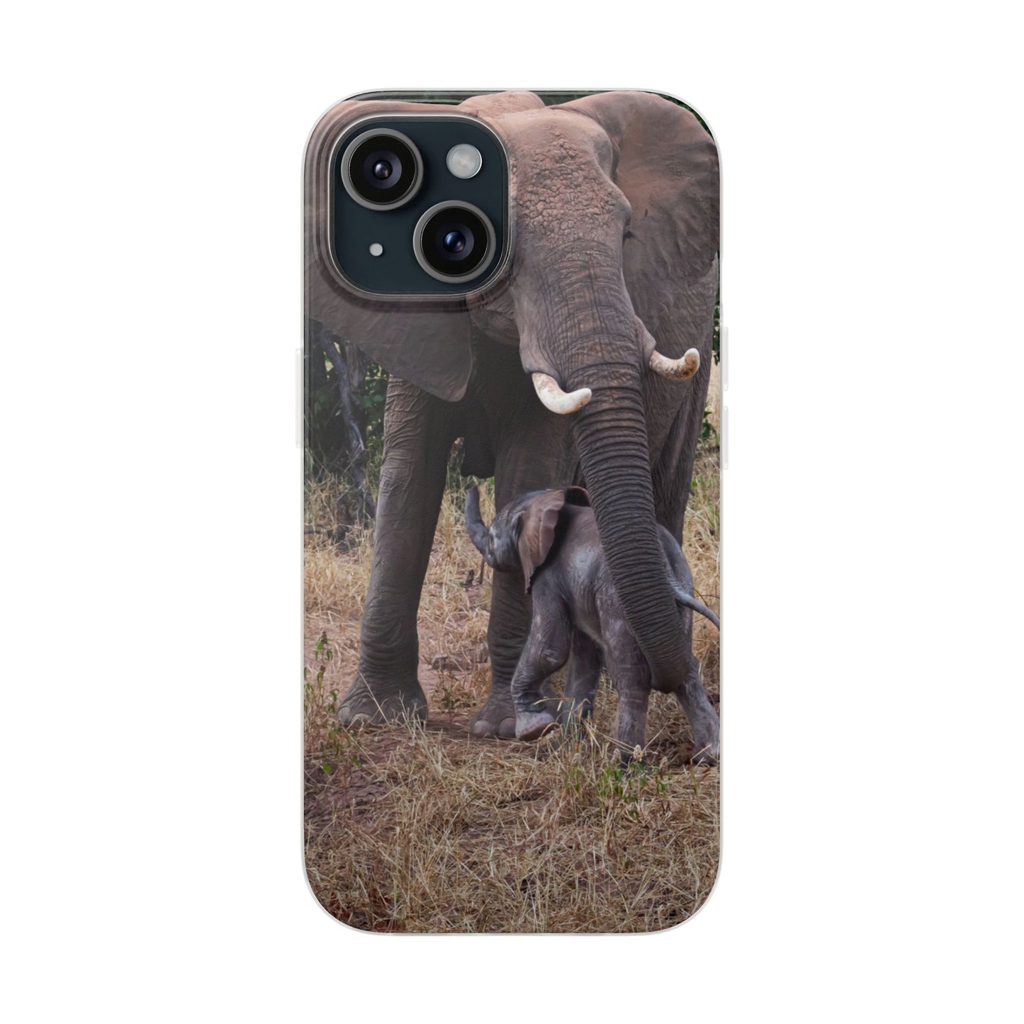 This elephant flexi case showcases a stunning photo taken in the Tuli Block of Botswana, capturing a powerful moment of a mother elephant lovingly protecting her calf. The vivid image reflects the deep bond between these majestic creatures, making it a perfect choice for nature lovers who appreciate the beauty of wildlife.