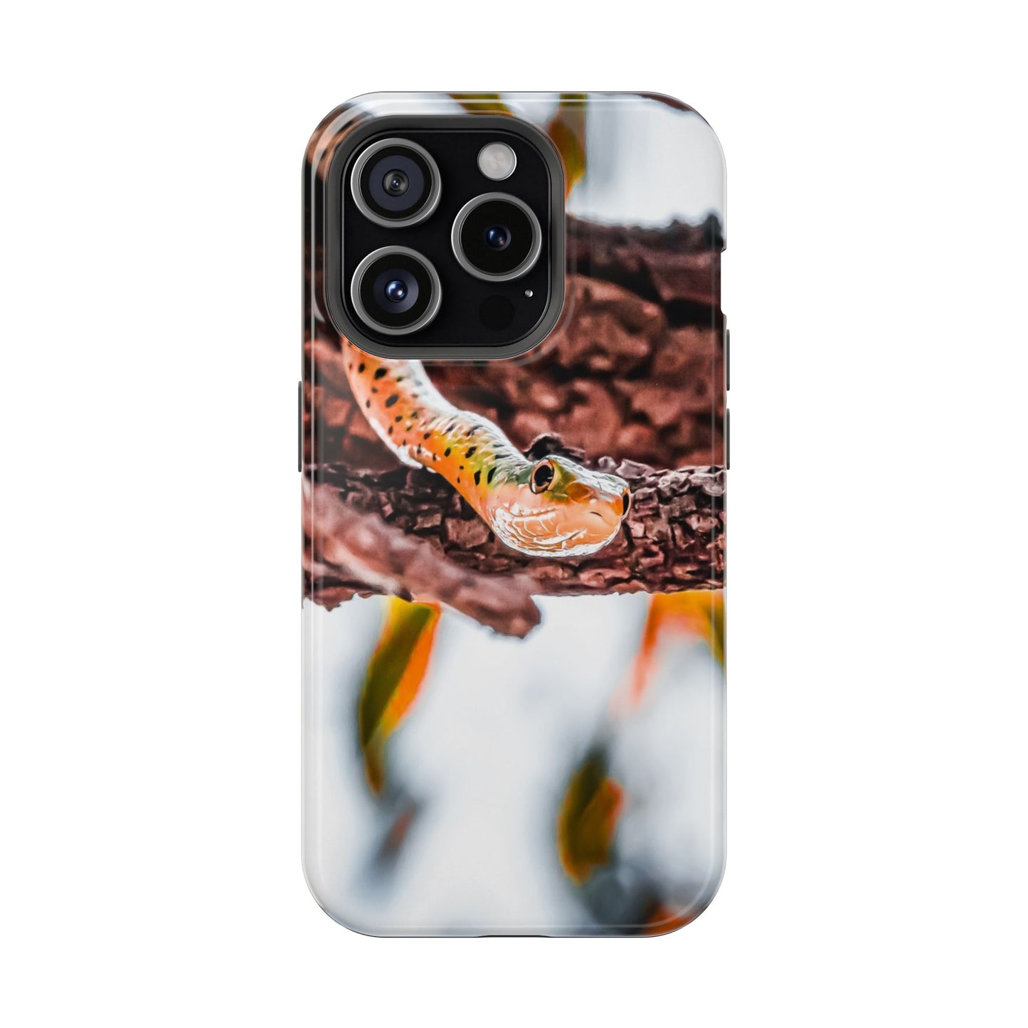 Discover our unique MagSafe® compatible cases showcasing an adorable spotted bush snake. Ideal for nature enthusiasts who want to protect their devices with flair.